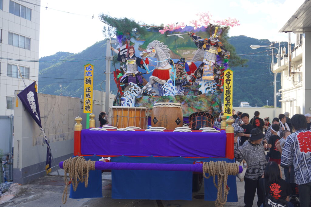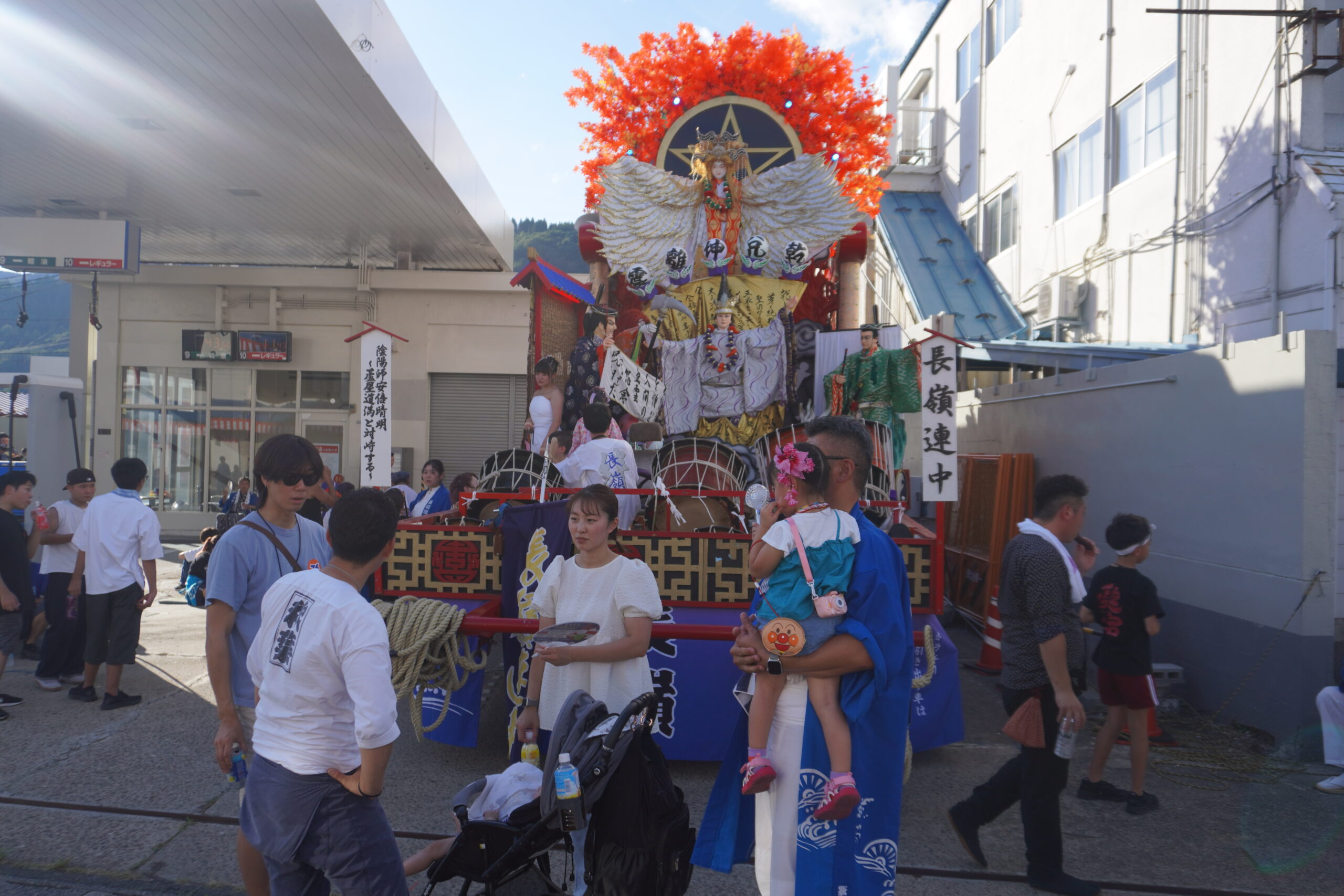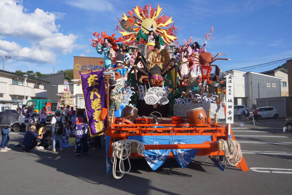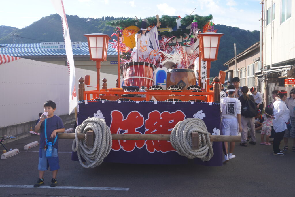 ちょうど山車が行列を終えたところだったので、山車展示状態でした。